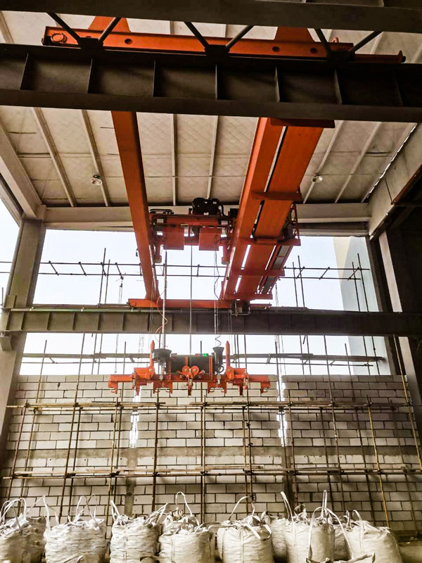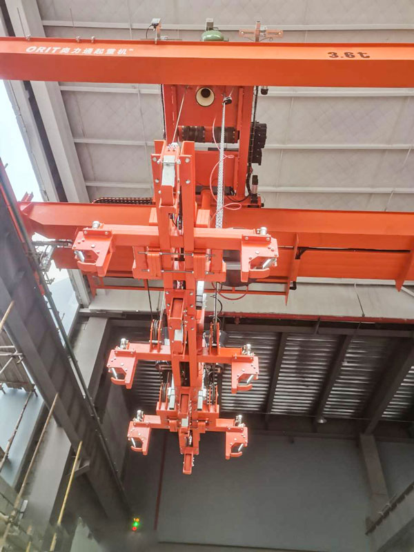 在黨101周年生日慶祝之際,奧力通起重機完成“三袋聯吊”智能噸袋起重機交付,該產品一次可吊運三袋噸袋,自動脫鉤,自動裝車;“三袋聯吊”世界首創,生產效率提升300%,節約人工70%;廣泛應用于食品、化工、礦業、冶煉等粉末狀或顆粒狀物料的噸袋自動裝卸。
